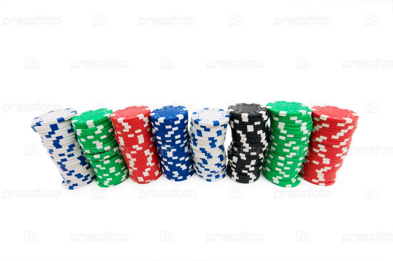 Чипы казино изолированы на белом