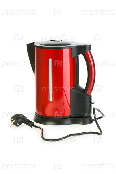 Красный электрический чайник изолирован на белом