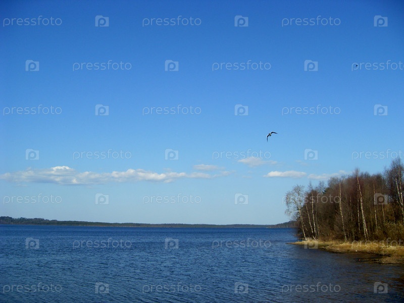 Вид на голубое озеро и небо