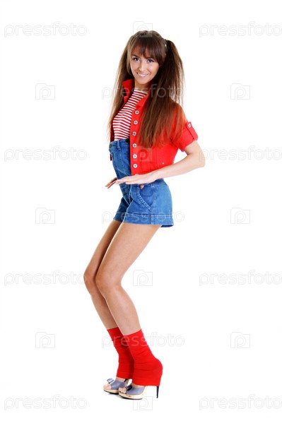 Сексуальная молодая девушка на белом фоне