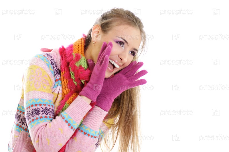 Девушка кричит на белом фоне