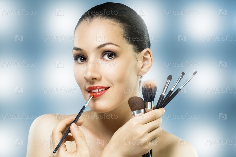 Девушка наносит макияж