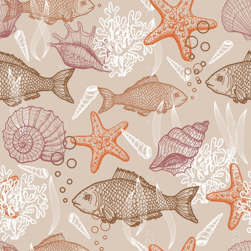 Море. От руки нарисованный бесшовный шаблон