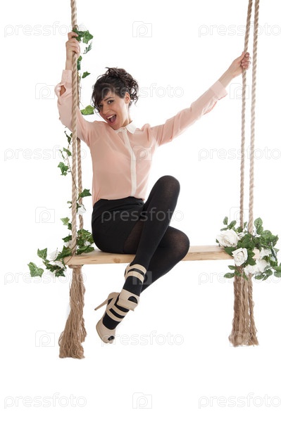 Красивая женщина на качели