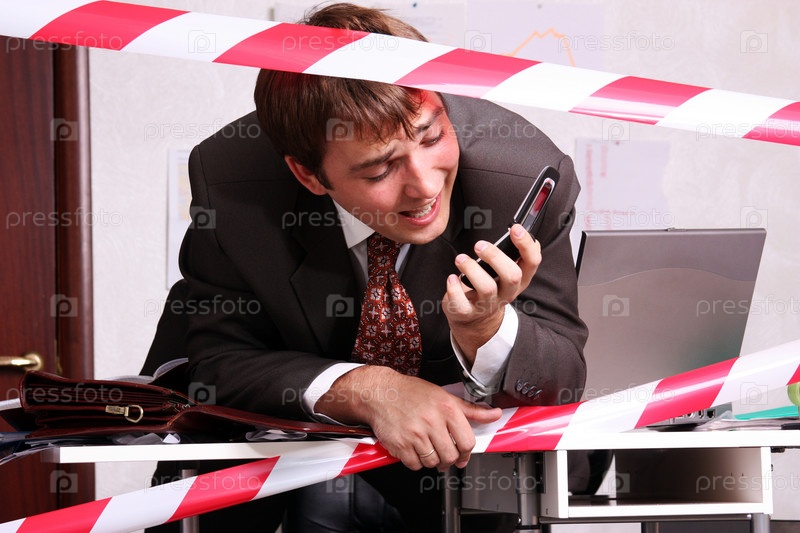 Бизнесмен говорит по телефону в офисе