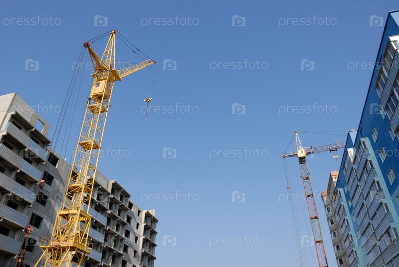 Строительный подъемный кран у высотных недостроенных домов