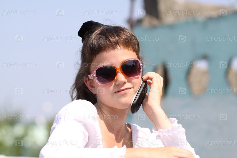 Девочка в солнцезащитных очках говорит по телефону