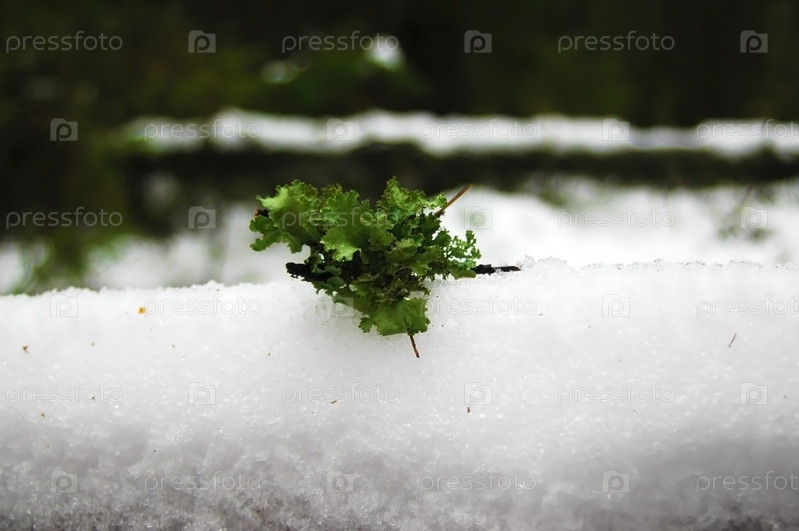 Ветка с лишайником на снегу