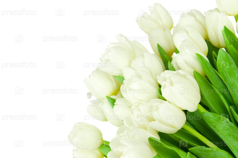 Букет из тюльпанов в вазе, изолированный на белом фоне