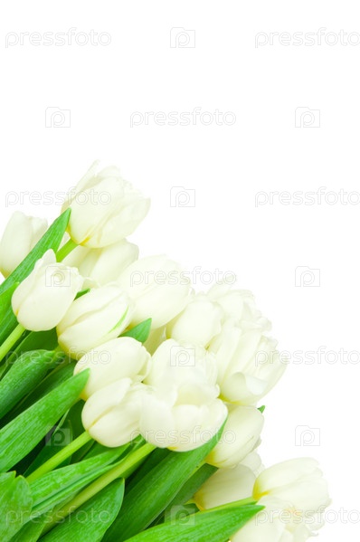 Букет из тюльпанов в вазе, изолированный на белом фоне