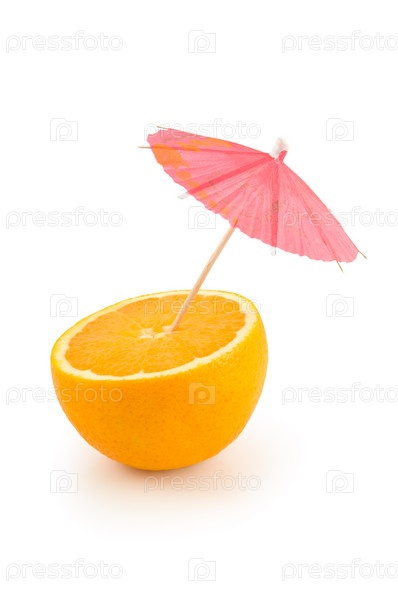 Оранжевый и зонтик на белом фоне