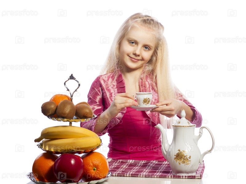 Красивая девочка пьет чай