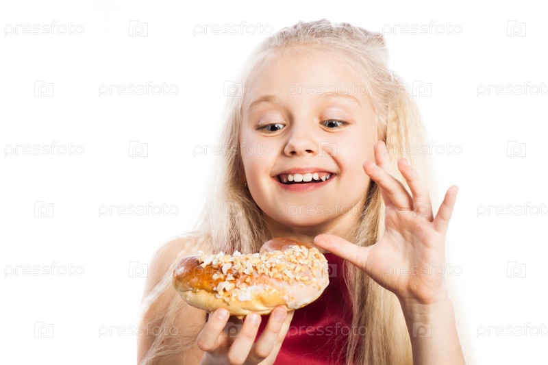 Девочка смотрит на рогалик