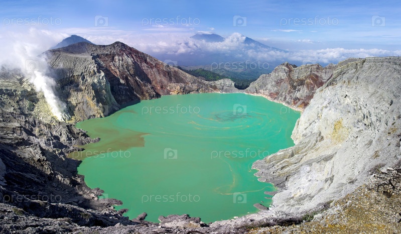 Серное озеро в кратере вулкана Иджен. Индонезия