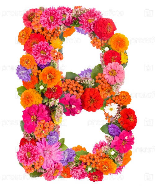Цветочный алфавит, изолированный на белом фоне
