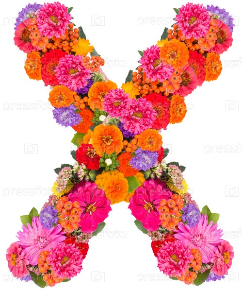 Буквы алфавита из цветов, изолированные на белом