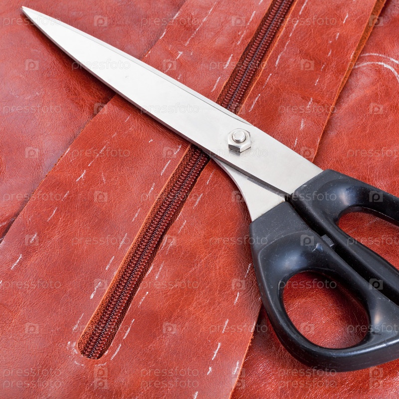 Портновские ножницы на выкройке из коричневой кожи