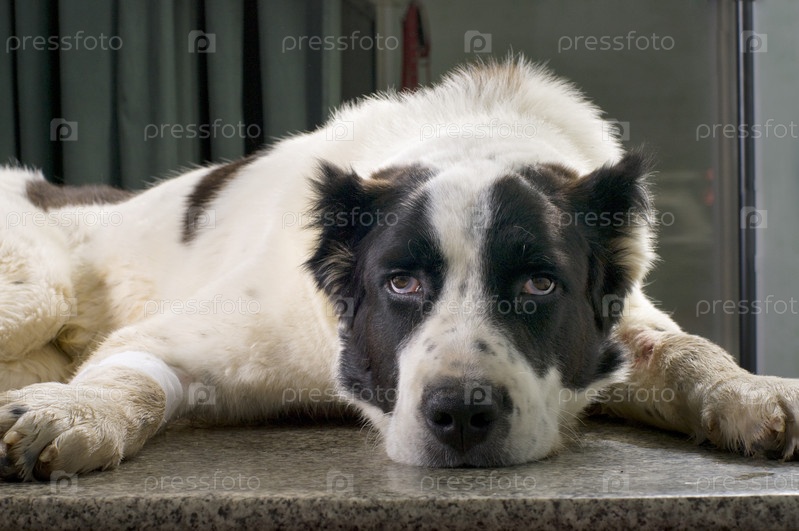 Больная собака в ветеринарной клинике