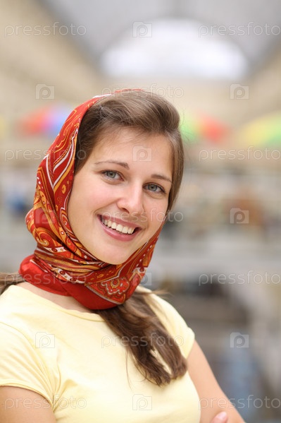 Портрет улыбающейся девушки в платке