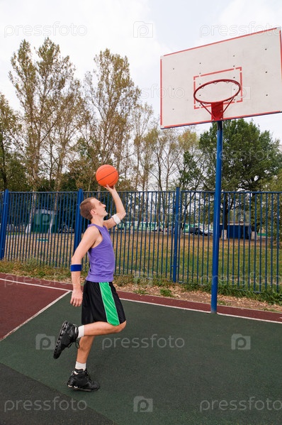 Парень играет в уличный баскетбол