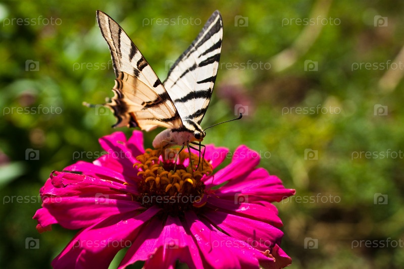 Бабочка на розовом цветке