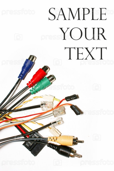 Пучок проводов с разъемами на белом фоне