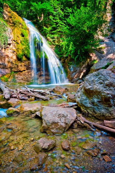 Водопад Джур-Джур в тропических лесах. Украина. Крым