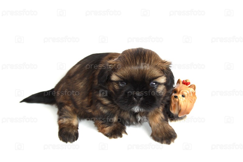 Щенок ши-тцу и статуэтка йорка