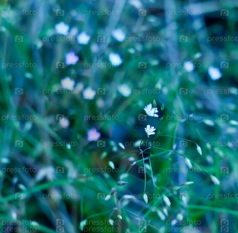Тоненький белый цветок в траве