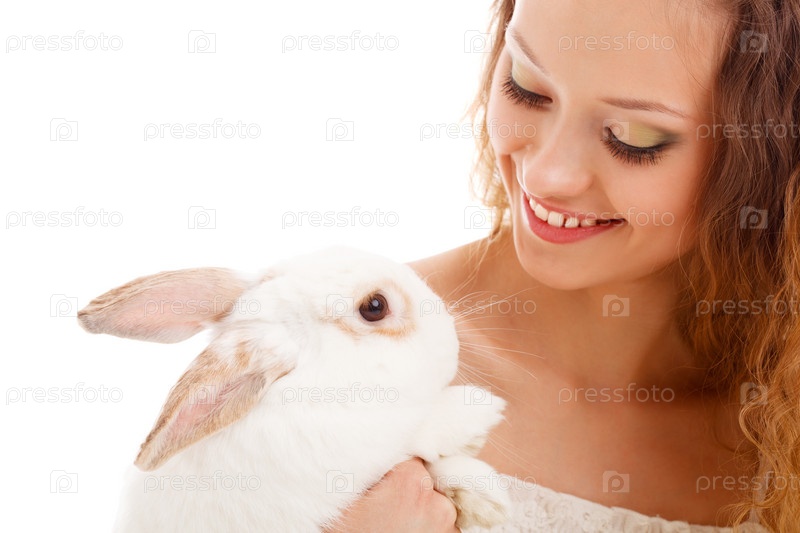 Счастливая женщина с кроликом