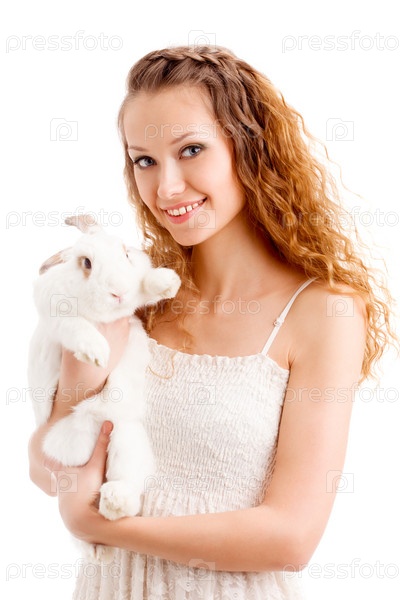 Счастливая женщина с кроликом