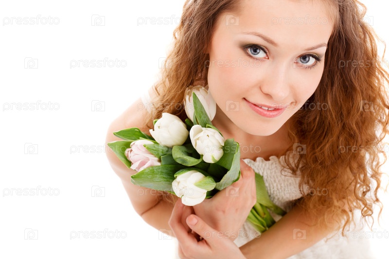 Женщина держит белые тюльпаны