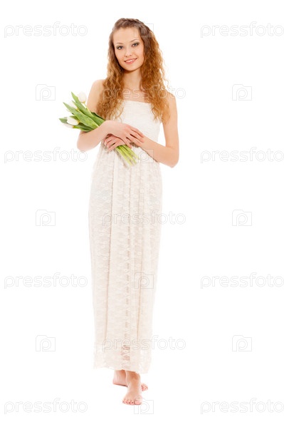 Женщина держит белые тюльпаны