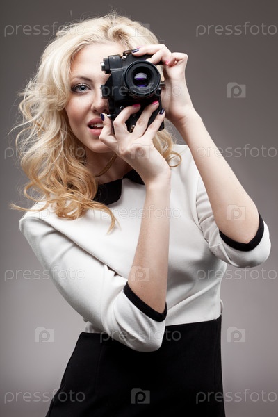 Блондинка со старой фотокамерой