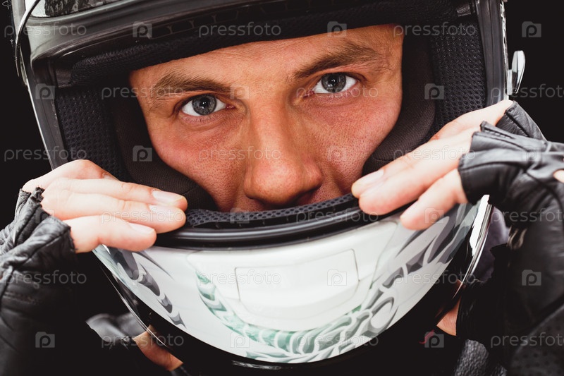 Мужчина в шлеме крупным планом
