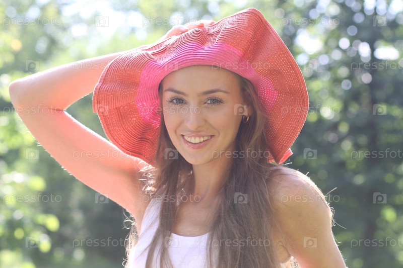 Девушка в яркой летней шляпке