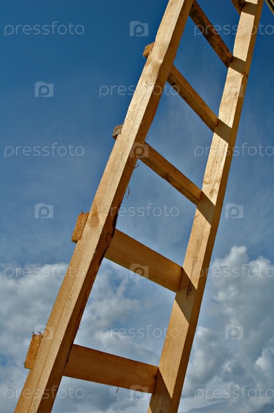 Деревянная лестница на фоне синего неба