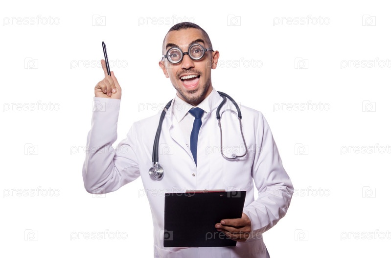 Забавный доктор, изолированный на белом