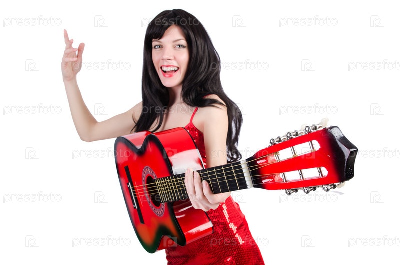 Певица с гитарой на белом фоне