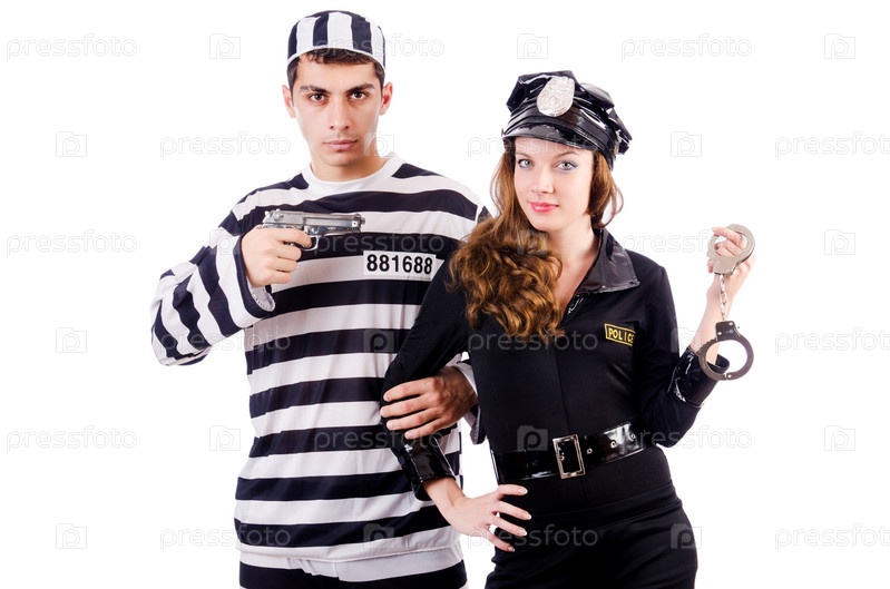 Полицейский и заключенный на белом фоне