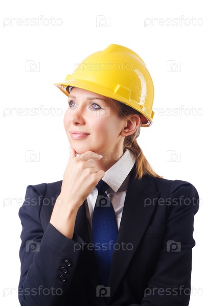 Бизнес-леди в каске на белом