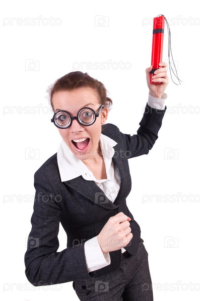 Бизнес-леди с динамитом на белом