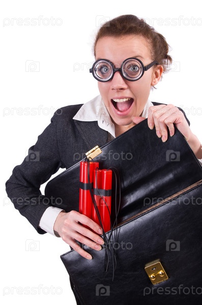 Бизнес-леди с динамитом на белом