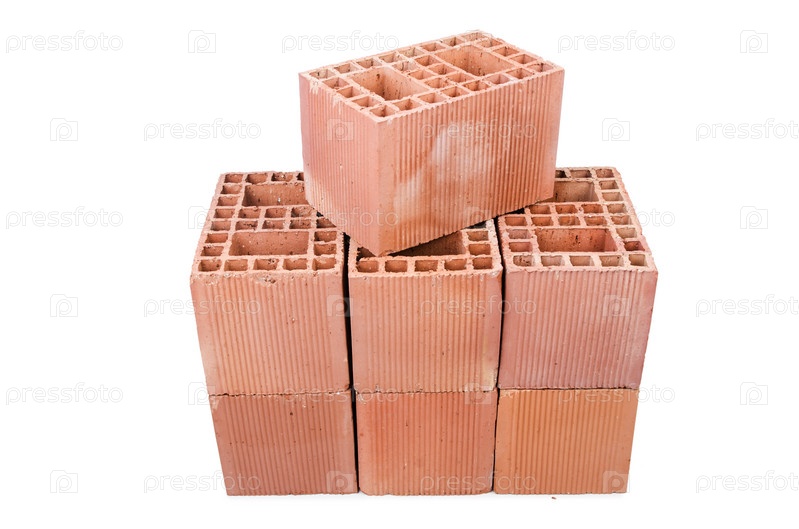 Стопка глиняного кирпича, изолированная на белом
