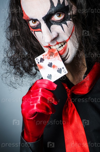 Злой клоун с картами в темной комнате