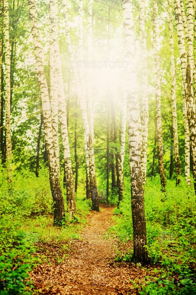 Березовый лес и солнце