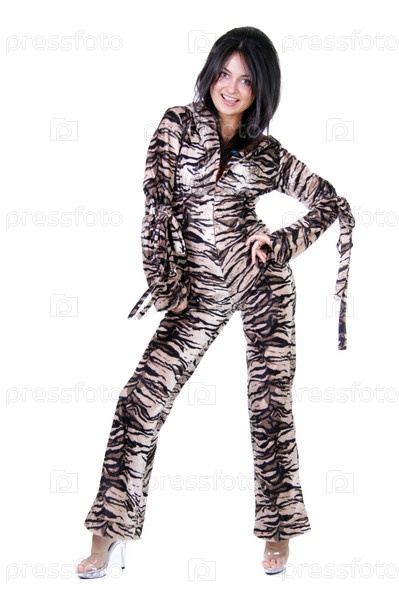 На белом фоне девушка-тигрица