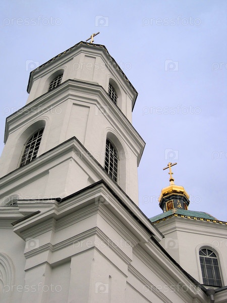 Высокая белая церковь на фоне неба
