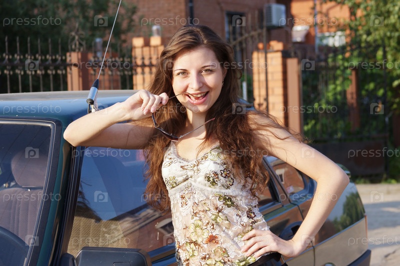 Молодая женщина рядом с автомобилем