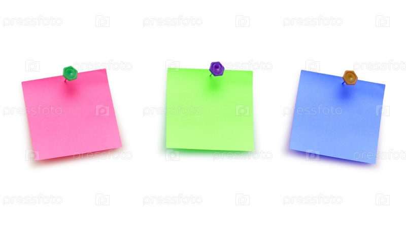 Три разноцветных стикера на белом фоне